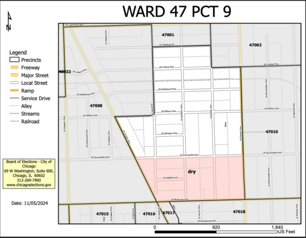 For over a century, the 47th Ward’s 9th Precinct has remained “dry.” That means that businesses within this small area of Ravenswood are unable to apply for liquor licenses. This restriction has limited growth for local establishments while neighboring precincts thrive with restaurants, taverns, and shops that can legally serve and sell alcohol. With the November 5 vote, residents of the 9th Precinct have a unique opportunity to open the door to more possibilities for small businesses by voting NO on prohibition.