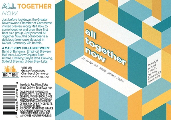 Way back in March of 2020, the Greater Ravenswood Chamber of Commerce (GRCC) invited brewers from across Malt Row to participate in their first ever collaborative brew day. Brewers from Band of Bohemia, Empirical, Half Acre, LaGrow, Smylie Brothers, Spiteful, and Urban Brew Labs came together on Friday, March 13th, with the intention of creating a special beer for release at the annual Ravenswood On Tap craft beer festival. Then slated for late June, the event would have marked the fifth anniversary of joint promotional efforts from Ravenswood’s community of independent craft breweries.