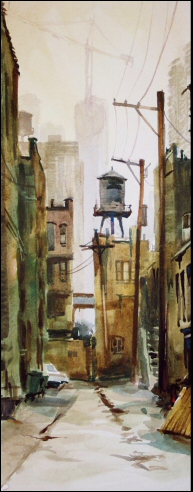 I originally came to Chicago in the early eighties as a set designer and art director for the entertainment industry. It was analogous to that career that I developed my interest in becoming a serious painter. I received my truly and most inspirational painting inspiration from Irving Shapiro, a master of watercolor painting at the American Academy of Art. Though I studied art in college, it was studying with this master that I really “got it.”