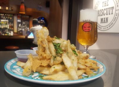 Oh, man. Well, the fried chicken biscuit is tough to beat. However, I’m also a sucker for the fried chicken or lamb rice bowls. And, there’s a new addition that must be mentioned. He’s running a weekly special on Wednesdays called the Castle Grinder which is cheddar pork sausage on a pretzel bun with spicy mustard, sauerkraut and his house made chips. Now, I know that doesn’t sound like anything you haven’t had before, but let me tell you, I don’t know what he does to that thing to make it taste so good. You have to trust me on this.