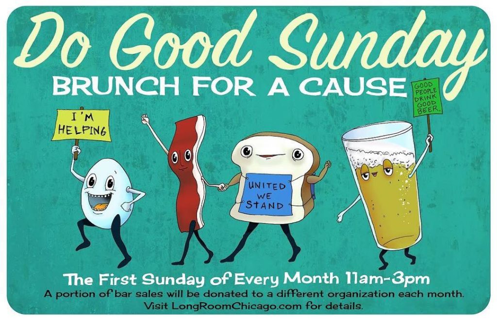 A little over a year ago, we launched Do Good Sunday: Brunch For A Cause. It’s a really casual fundraising effort which I think people really appreciate. Each month we pick a different organization to support. And, then on the first Sunday of the month, we donate 25% of bar sales during brunch (11:00-3:00).