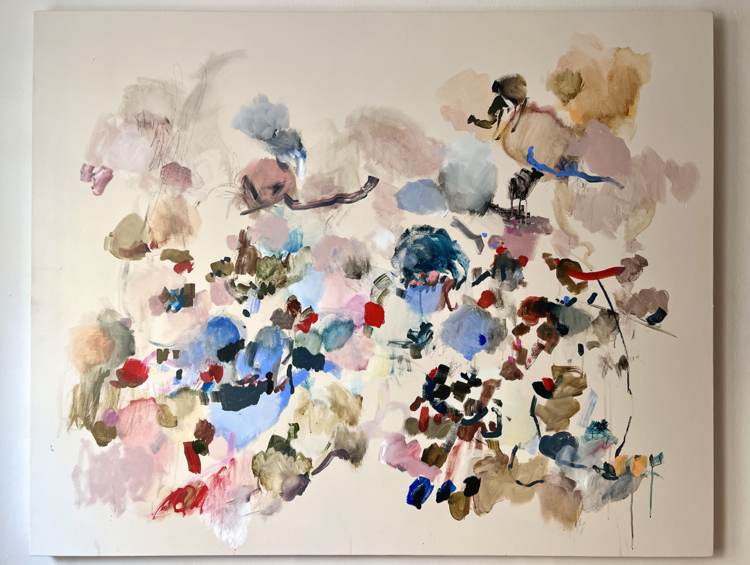 In recent years, Cash’s work has focused increasingly on color theory, as she creates playful and unusual palettes. Her recent work is often more graphic in nature, as she views these compositions as vessels for presenting various color palettes in a somewhat literal way. As she experiments with endless combinations of colors, she simultaneously explores the feelings that these unique combinations evoke.