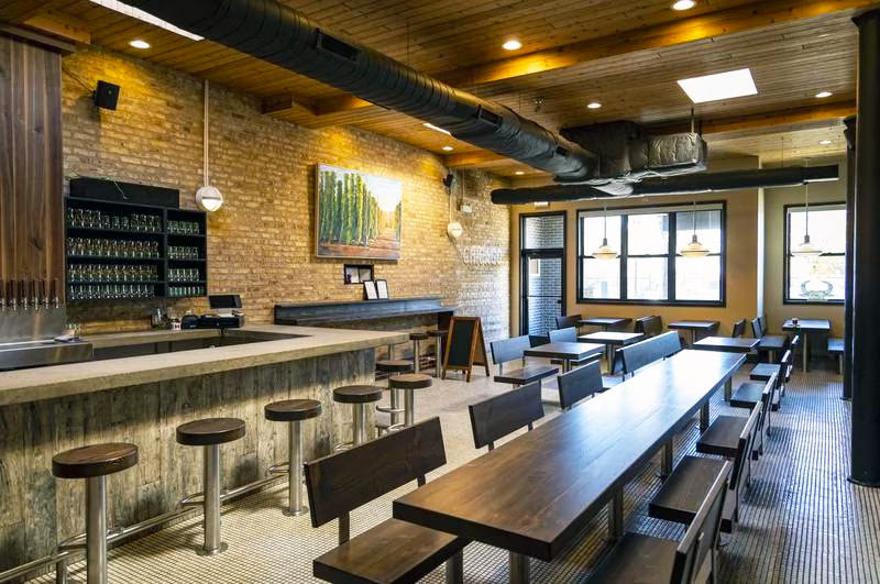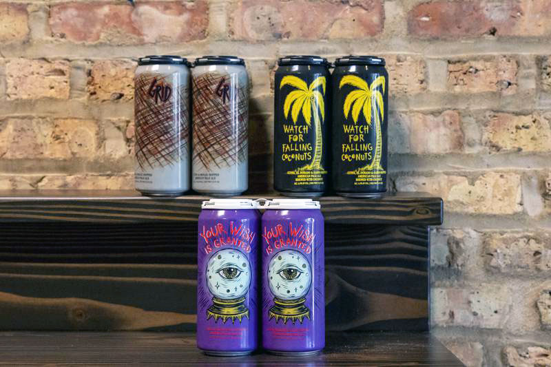 In 2022, Hop Butcher opened a brewery and taproom on Lincoln Ave (in the former home of Malt Row neighbors Half Acre). The space has been reimagined with the help from artist Dan Grzeca, who also creates artwork for Hop Butcher’s beers. Co-founder Jeremiah Zimmer spoke to The Hop Review back in 2016 about working with Grzeca to craft the brewery’s distinct visual style. “We wanted bold, colorful and concise and we wanted it to come from a place with a Chicago aesthetic. Dan Grzeca brings that. His scratchboard style is as unique as it gets. He’s well-respected around Chicago and the artist community and he is born and raised in the city as well.”