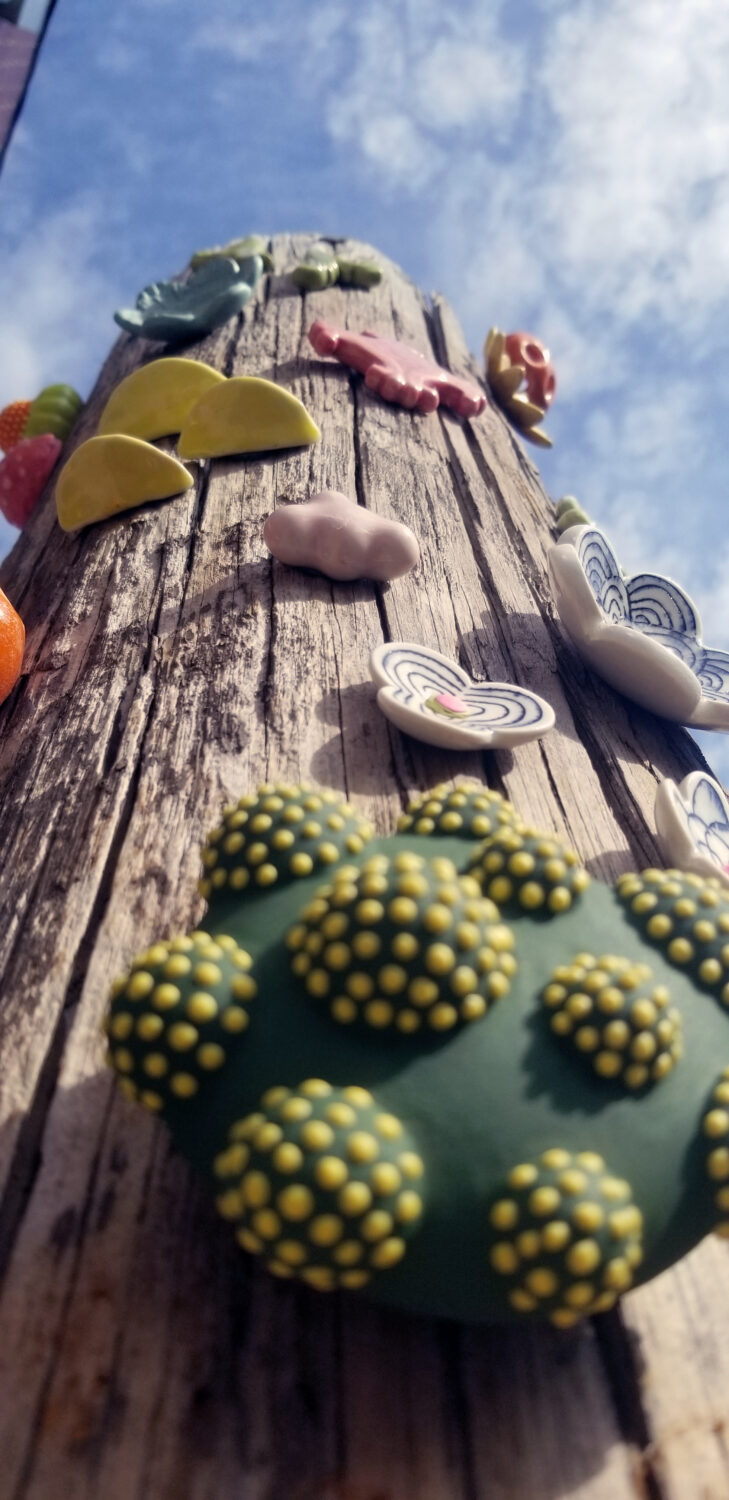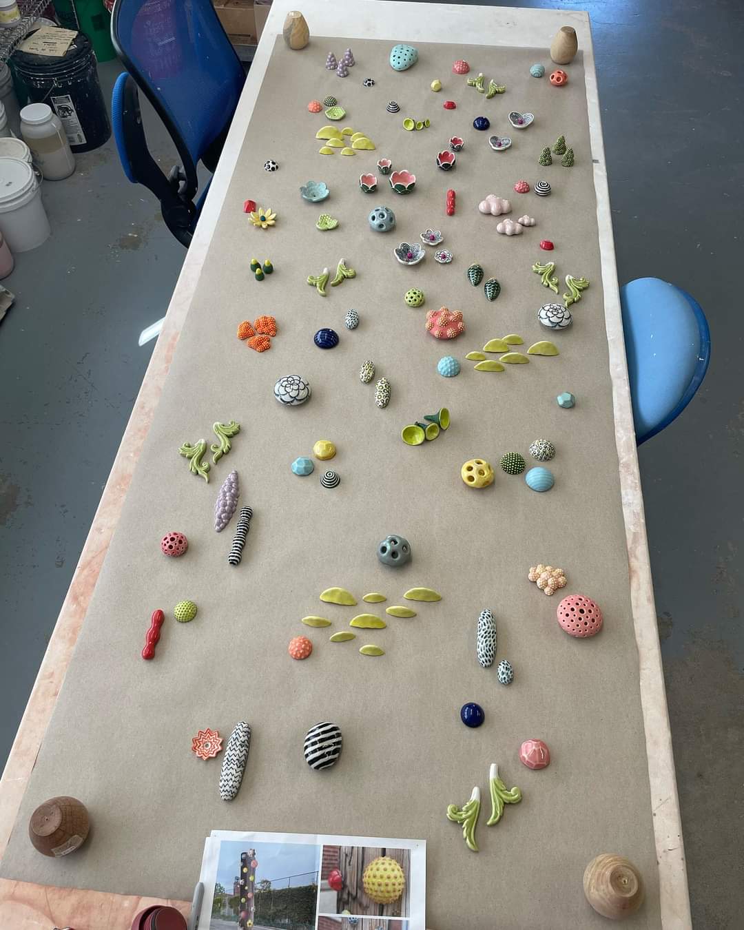 After reviewing 21 proposals, RCC commissioned Sarah Hicks to bring “The Nurse Trees” to Ravenswood. Over the summer, Sarah hand-crafted approximately 600 ceramic pieces for the installation. Their forms were based on fungi, moss, and microscopic life native to trees typically used for utility poles.