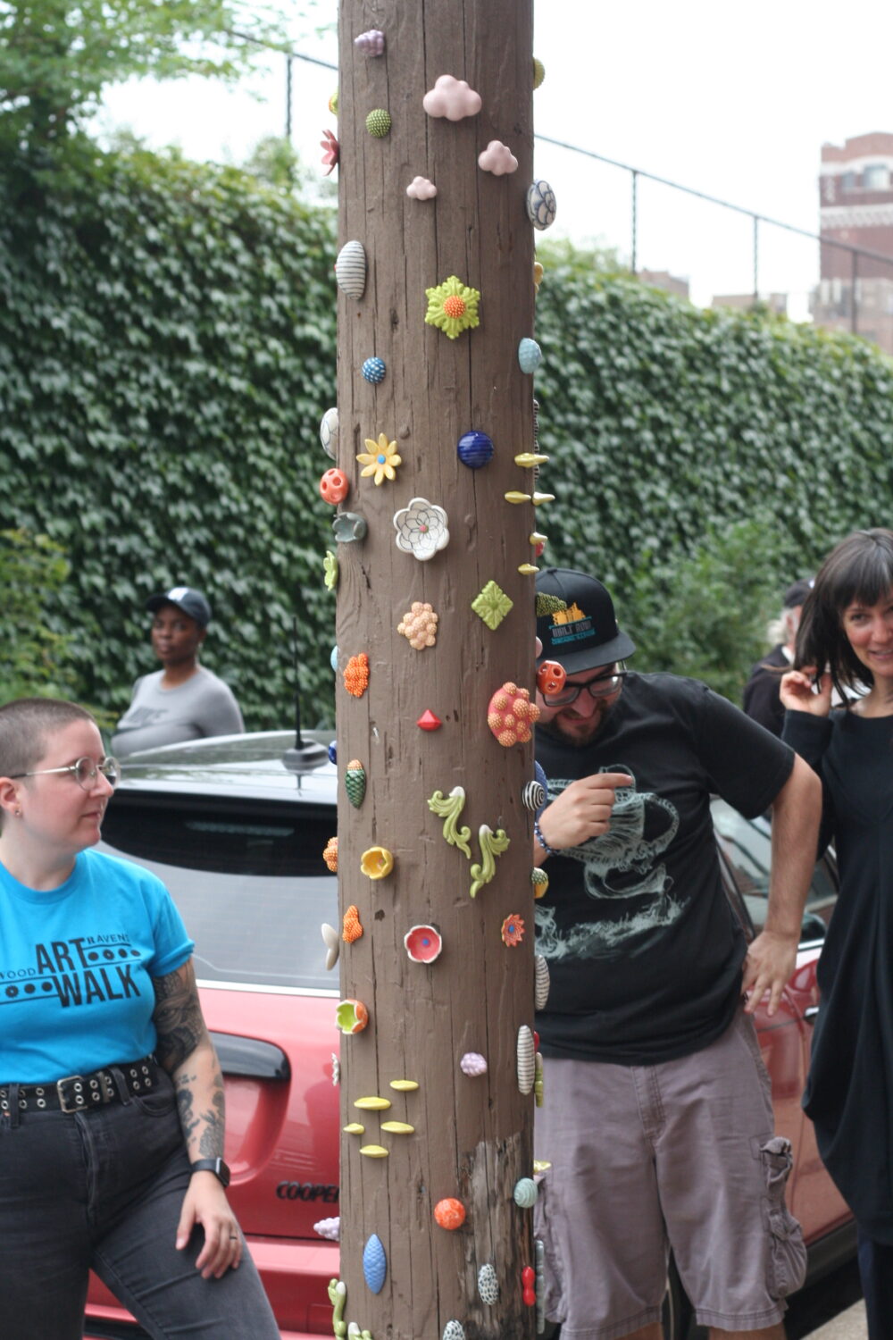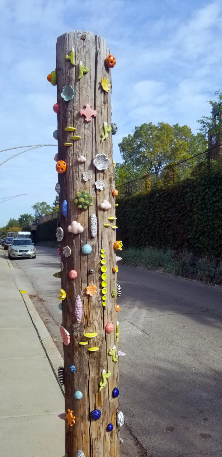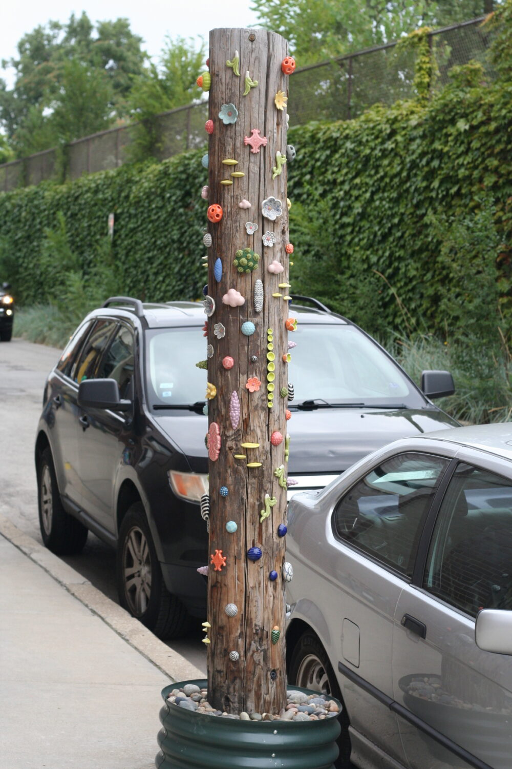In the Spring of 2023, the Ravenswood Community Council, in partnership with the Greater Ravenswood Chamber of Commerce and Special Service Area #31, issued an RFP seeking proposals from artists to beautify two decommissioned utility poles along Ravenswood Avenue. The projected presented a rare opportunity to expand the Ravenswood Sculpture Garden on the west side of the train tracks, where public way space is limited.