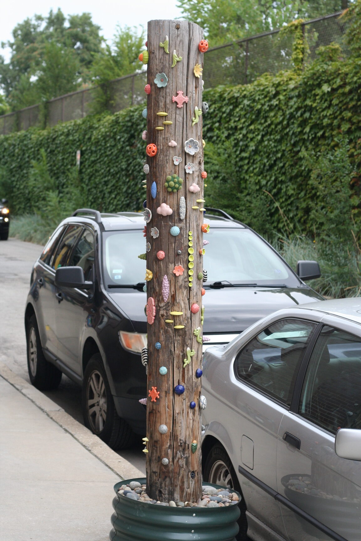 My concept for these pieces is based on the natural life cycle of the types of trees commonly used to create utility poles. These poles are generally made from Douglas Fir and Southern Pine trees. In their natural environment at the end of a tree’s life downed logs and decaying stumps become nurseries for new life. Called “nurse logs” or “Nurse Trees” they become covered in organisms like fungi, moss, seedlings and other microscopic life. Nurse logs provide nutrients, moisture, space, and shelter that gives new life a chance to survive. For these two utility poles, these fallen logs, I will create small sculptural objects that reference the beauty in the microorganisms needed to begin this new life. The sculptural pieces will be attached to and embedded in the utility pole. The pieces will pay respect to the tree but also to Chicago’s slogan, “Urbs in Hortu” which translates to City in a Garden. Chicago has one of the most visionary park and boulevard systems in the nation. I would like this to be my contribution to making this city a lively and lush place to live and grow. - SARAH HICKS