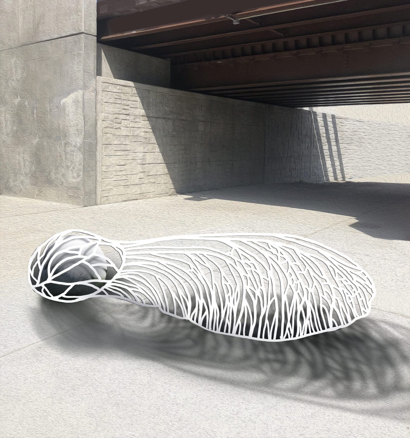 “Seed” was commissioned and installed as a part of the debut of the Ravenswood Sculpture Garden in 2021.