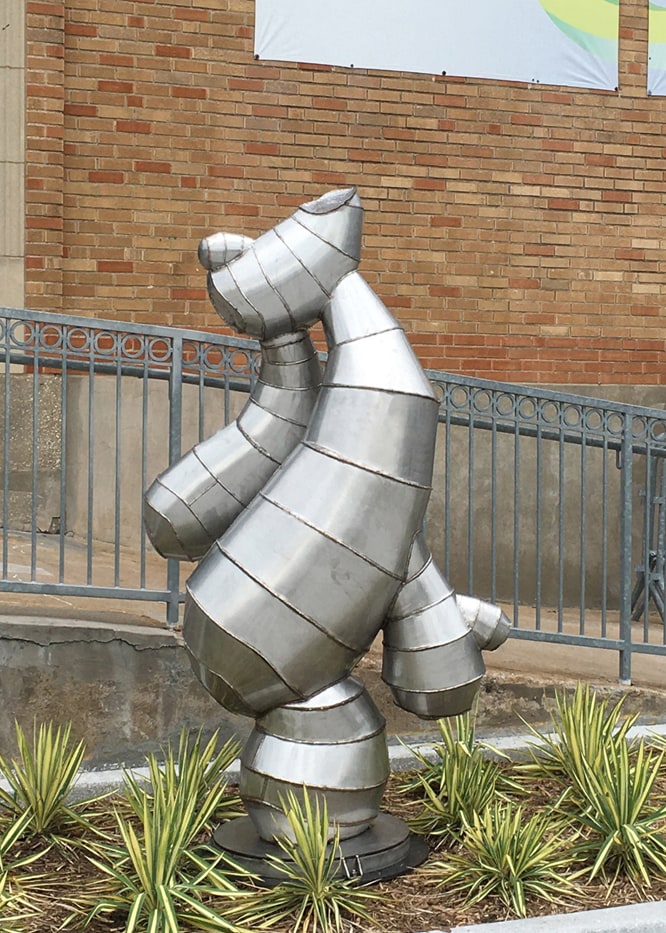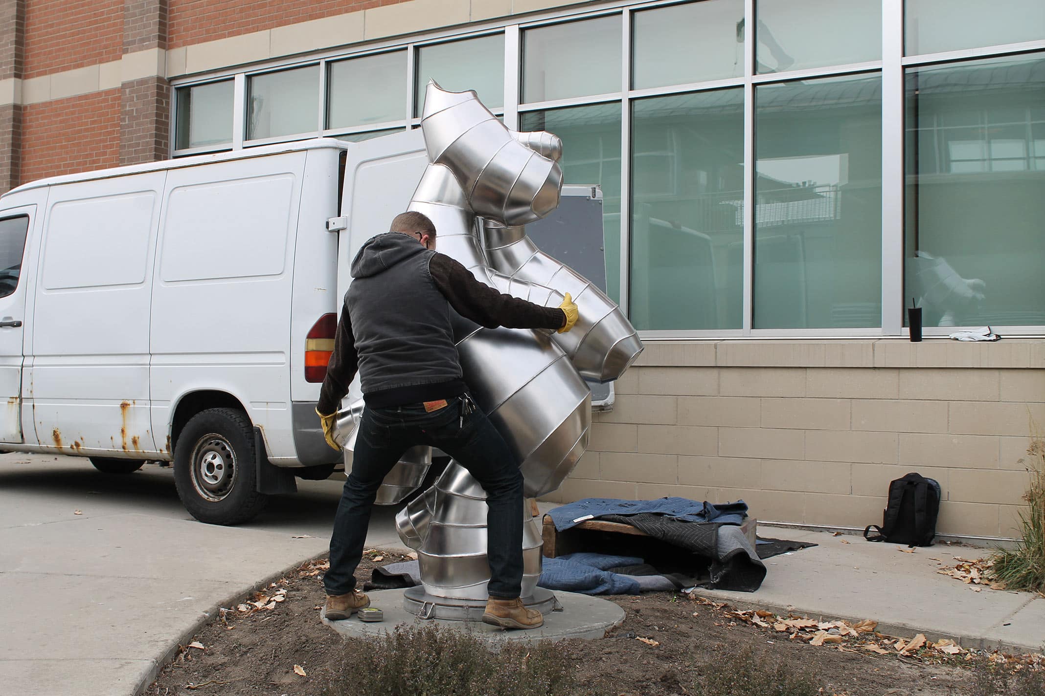For the last several years I have focused exclusively on building for the outdoors. My primary medium is steel, which I fabricate and have hot-dip galvanized.