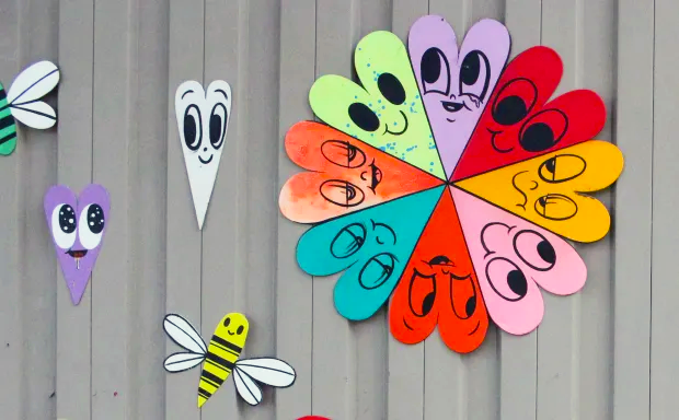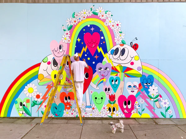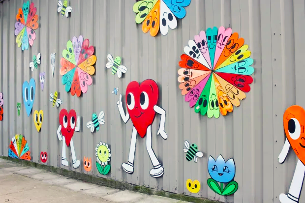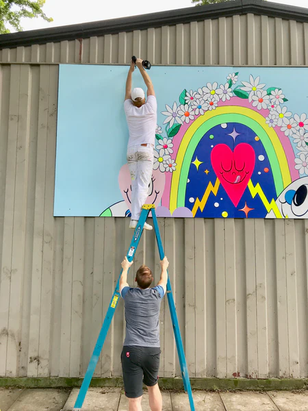 After the installation was vandalized in September of 2017, Uphues reimagined the piece on a series of painted panels. On June 28, 2018, Uphues completed final touch-ups on the new installation, which is even brighter and bolder than its beloved predecessor.