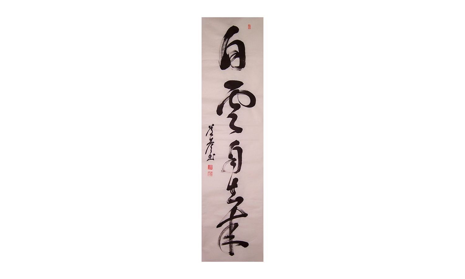 The beauty of Hosokawa Roshi’s calligraphy works lies in the simplicity and elegance of his brushstrokes. His artworks include Kanji characters and Zen sayings, all reflecting his spiritual journey.
