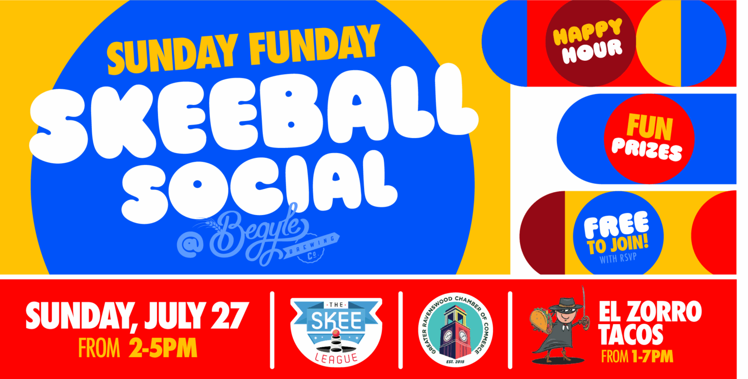 Prizes for participants and game-winners, courtesy of The SKEE League and the Greater Ravenswood Chamber of Commerce. Prizes will include gift cards to Ravenswood small businesses, gifts from Malt Row – Ravenswod’s community of craft brewers and distillers, and discounted skeeball league registration. One winner will even earn a complimenaty spot in the upcoming 8-week league at Begyle Brewing.