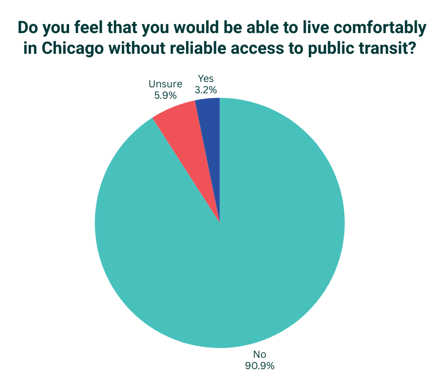 More than 90% of residents reported that they could not live comfortably in Chicago without reliable public transportation.