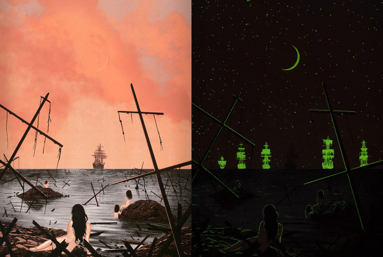 Taking inspiration from their travels and home base near Detroit, Michigan, every original illustration is one-of-a-kind right down to the uniquely blended inks. The narrative quality of their work has been sought out by like minded storytellers, including musicians, filmmakers, comedians, and game designers.