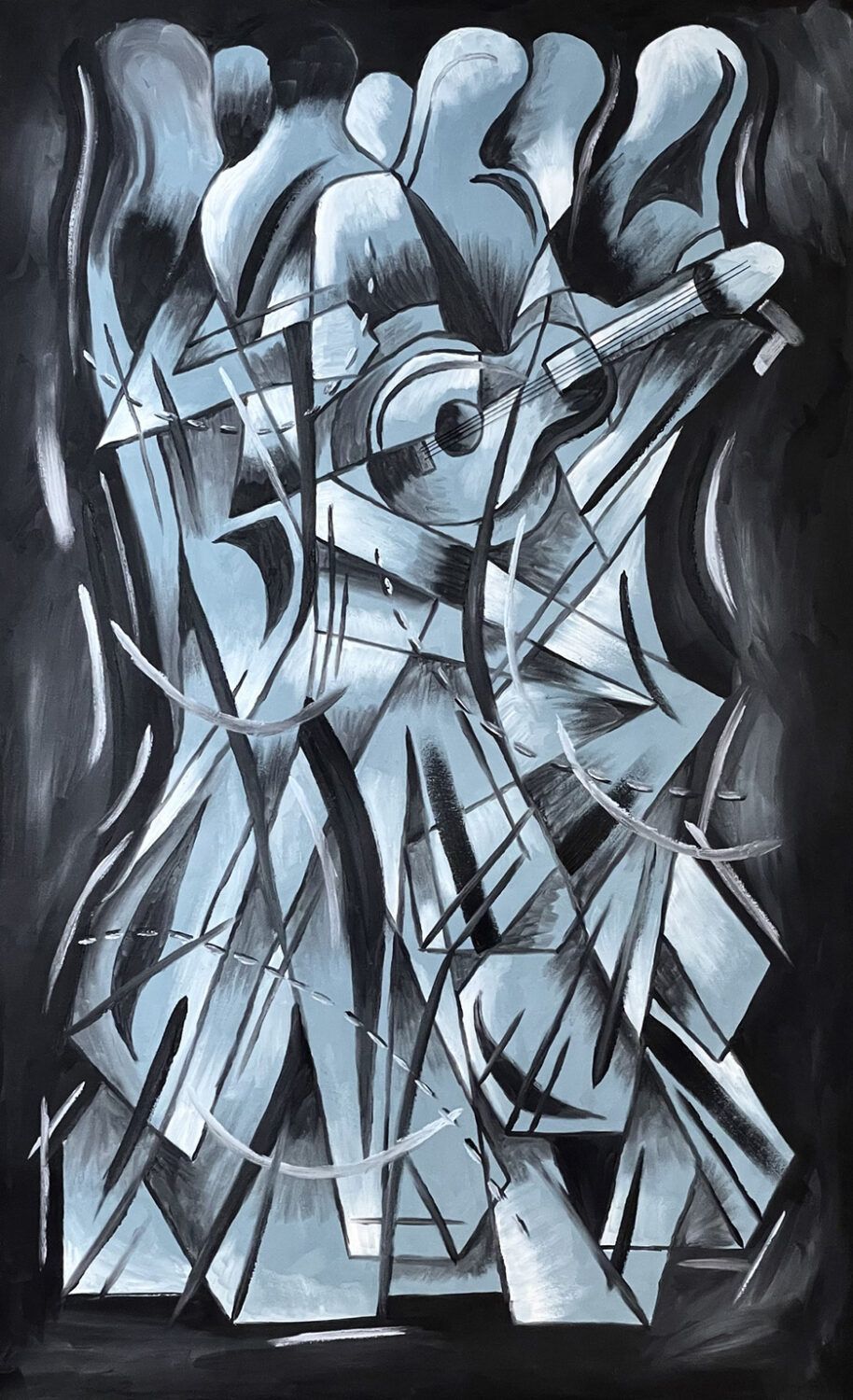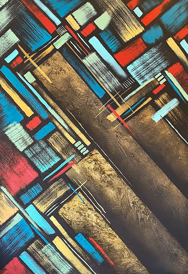 As an undergraduate, I had the pleasure of studying and creating a to-scale replica of Marcel Duchamp’s “Nude Descending a Staircase,” a masterpiece in the cubist art movement. I fell deeply in love with Duchamp’s style and my replica still hangs prominently in my Chicago home. I have leveraged these abstraction techniques and made them my own in order to present my viewpoint on a variety of topics.