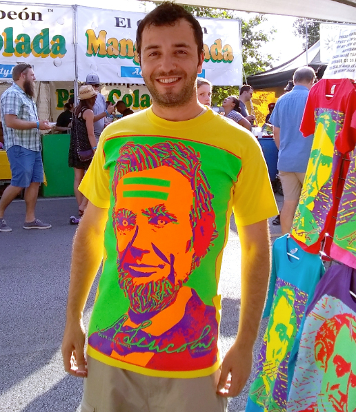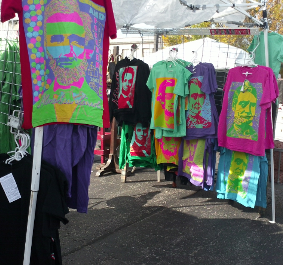 My name is Chris and I have been creating colorful Abraham Lincoln shirts for over 25 years. I sell them at festivals in major cities around the Midwest. My shirts are intended to remind people of Lincoln and the more equal and democratic society he envisioned.