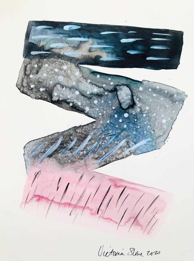 Victoria brings an extensive mastery of color theory and compositional elements to each of her paintings. As an abstract painter she creates optical illusions using watercolors as her medium.