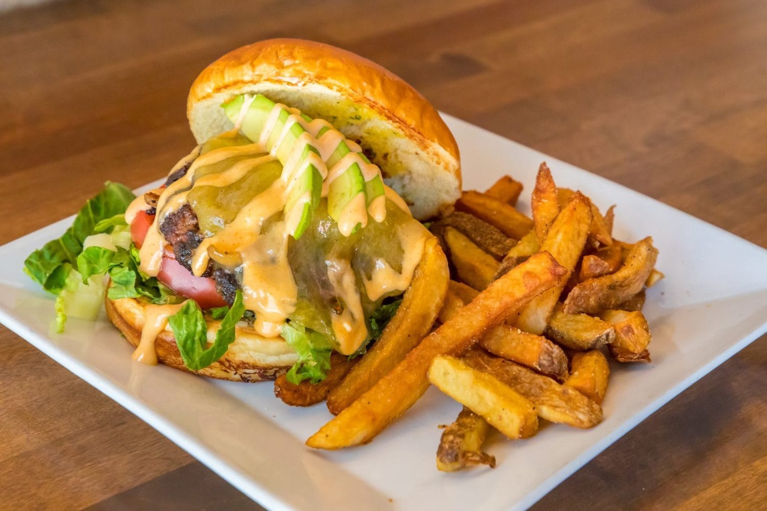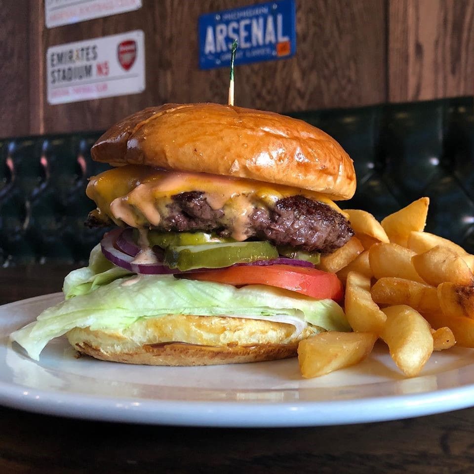 Looking for a family-friend spot to catch the game while social distancing? The Piggery offers outdoor seating on their rooftop “Sty Deck” and new street-level tented patio. Both are excellent spaces to enjoy burgers, beer, and BBQ. Their current “Socially Distanced Football Weekend Special” is a tender smoked brisket sandwich served with fries for $10.99.
